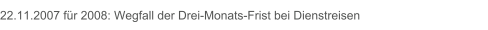 Tatsächliche Fahrtkosten oder die Reisekostenpauschale mit 0,30 EUR pro gefahrenen Kilometer sowie Übernachtungskosten und Reisenebenkosten sind bei einer Auswärtstätigkeit von über drei Monaten nach den neuen Lohnsteuerrichtlinien 2008 in der tatsächlich angefallenen Höhe ansetzbar. Lediglich bei den Pauschalen für Verpflegungsmehraufwendungen bleibt es bei der Begrenzung auf drei Monate. HINWEIS: Der Bundesrat hat zwischenzeitlich den Neuregelungen im Reisekostenbereich zugestimmt.